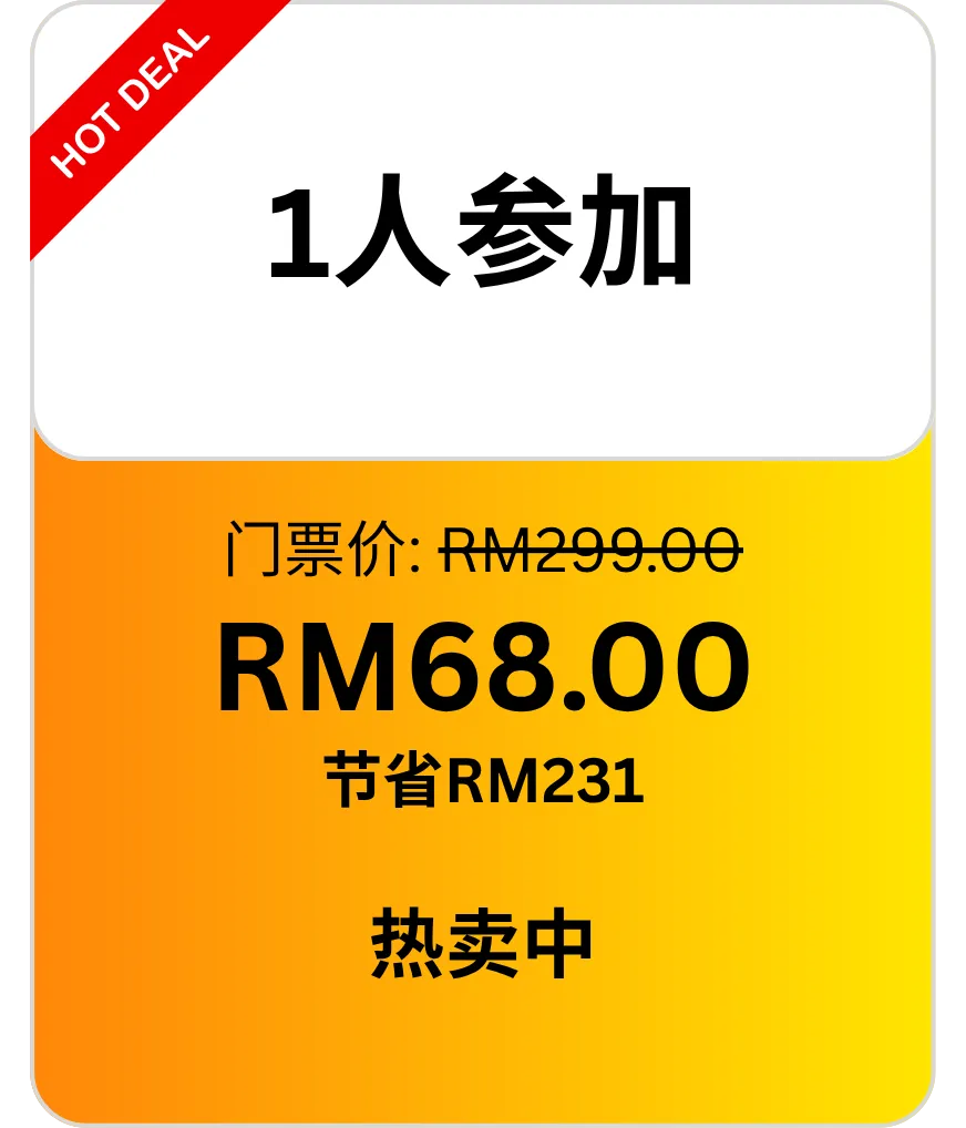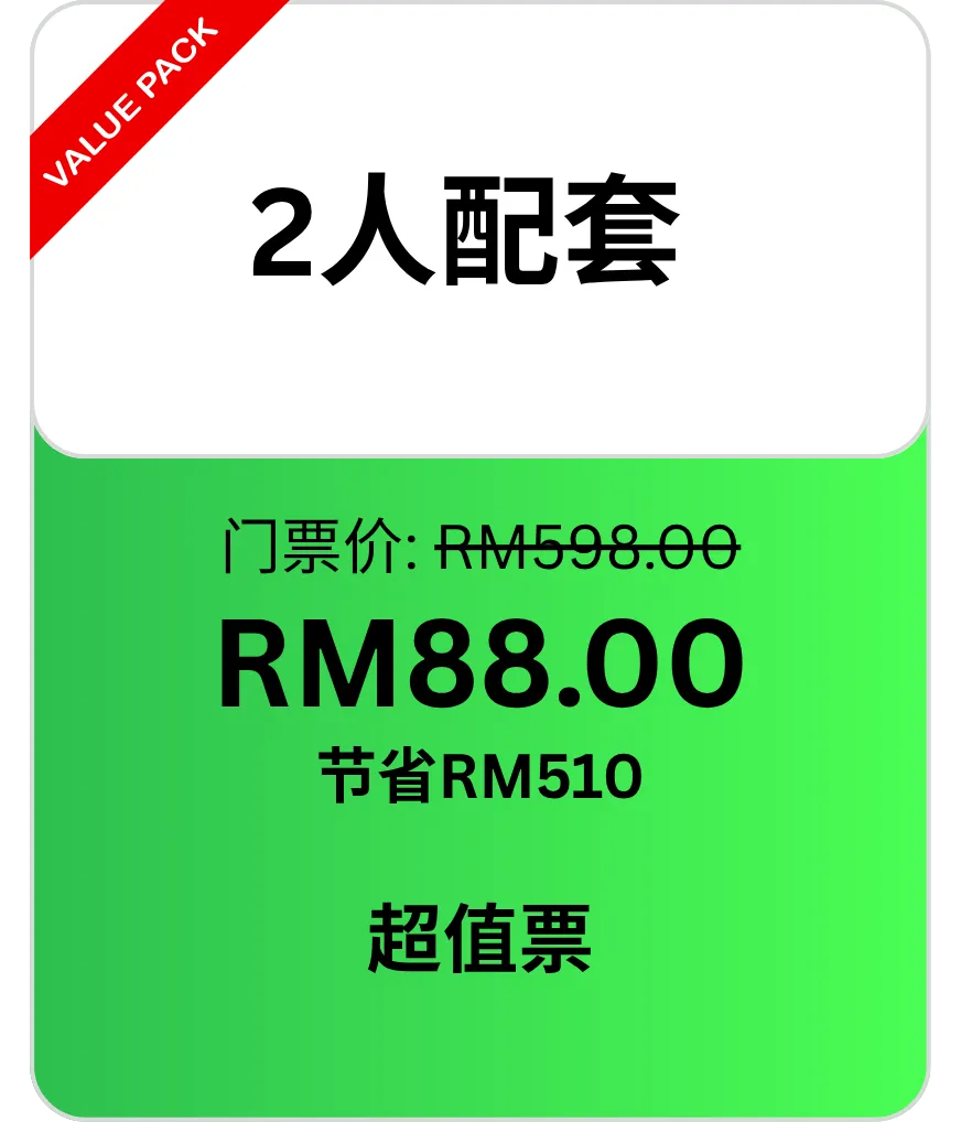 我们也特别设置了双人票RM88,让你轻松带合伙人同行。