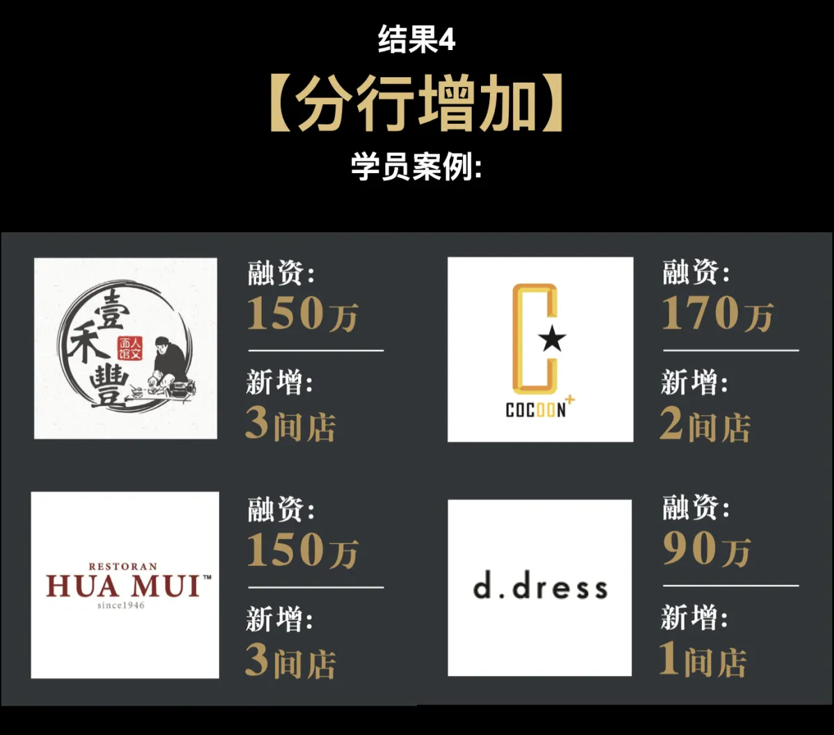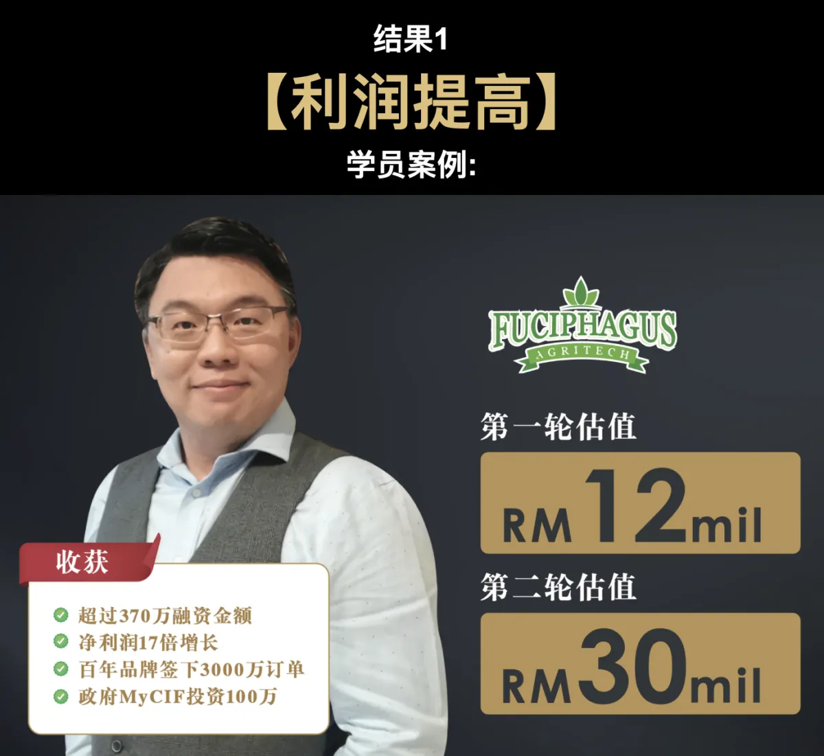 横跨各种行业,完成百万融资,包括: FMCG行业、食品工厂、餐馆、服饰品牌、农业、护理业、婚礼堂、幼儿教育、养殖业等等。
