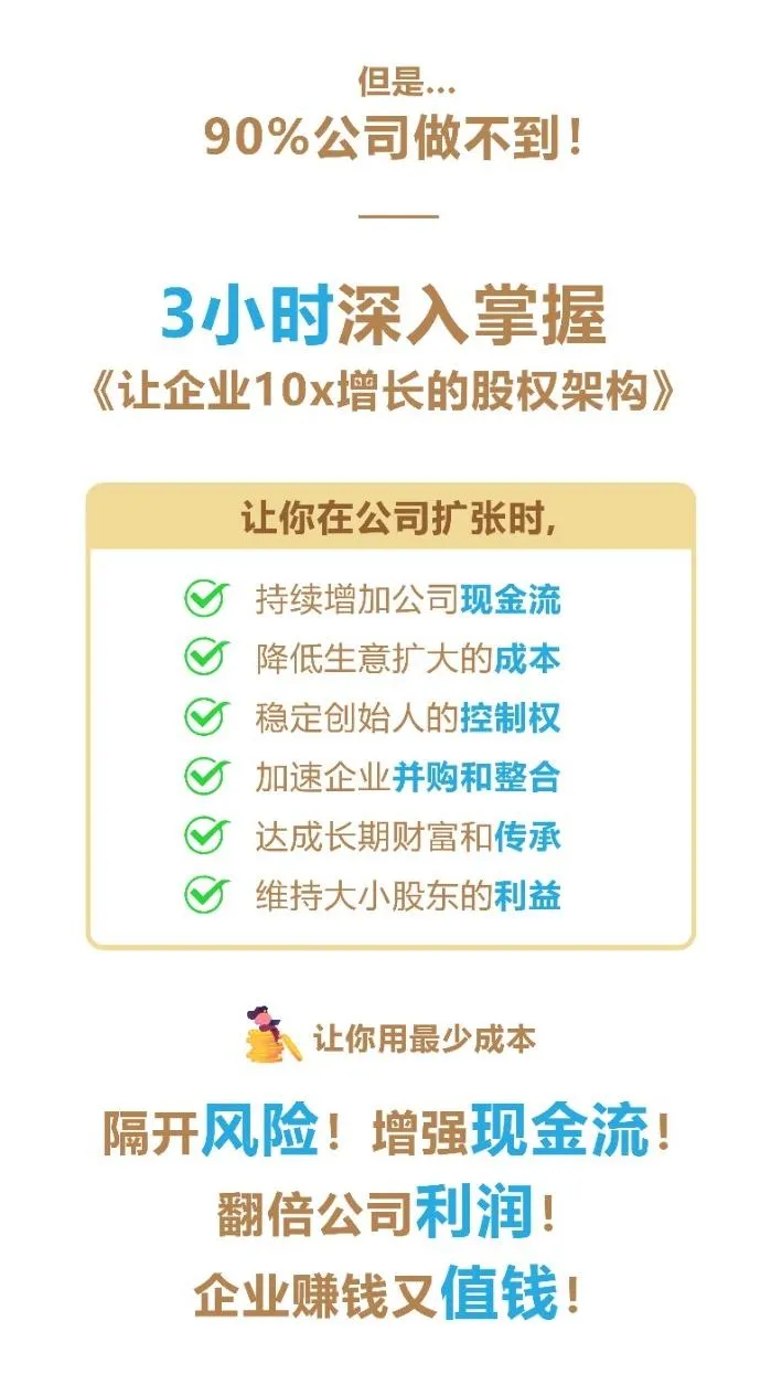 你不用再求股东出钱、找亲戚朋友借钱,你可以通过稀释股权、转让股权、股权置换、合并收购的方式扩大企业,而且合法。